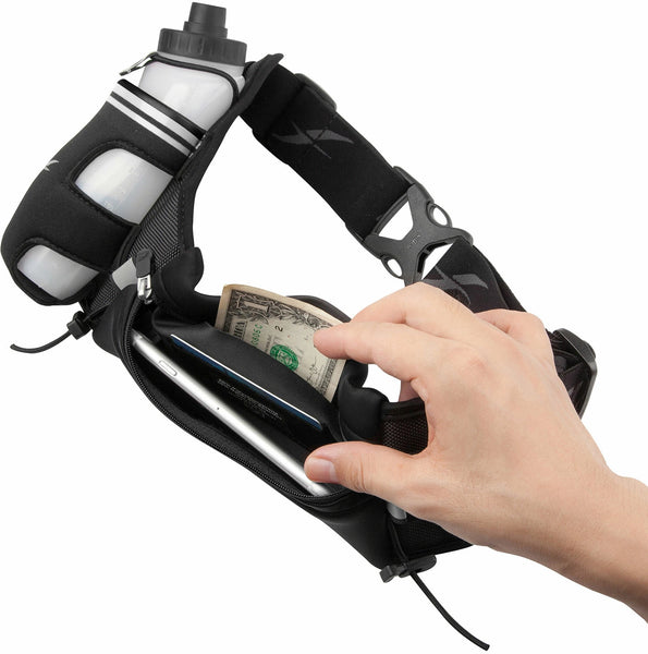 Sangle réglable (25 à 60 pouces) pour toutes les morphologies. Écoutez votre musique via l'ouverture pour écouteurs, fixez vos bouteilles dans les poches dédiées et restez visible la nuit grâce aux bandes réfléchissantes. Parfaite aussi pour accrocher votre dossard en compétition..